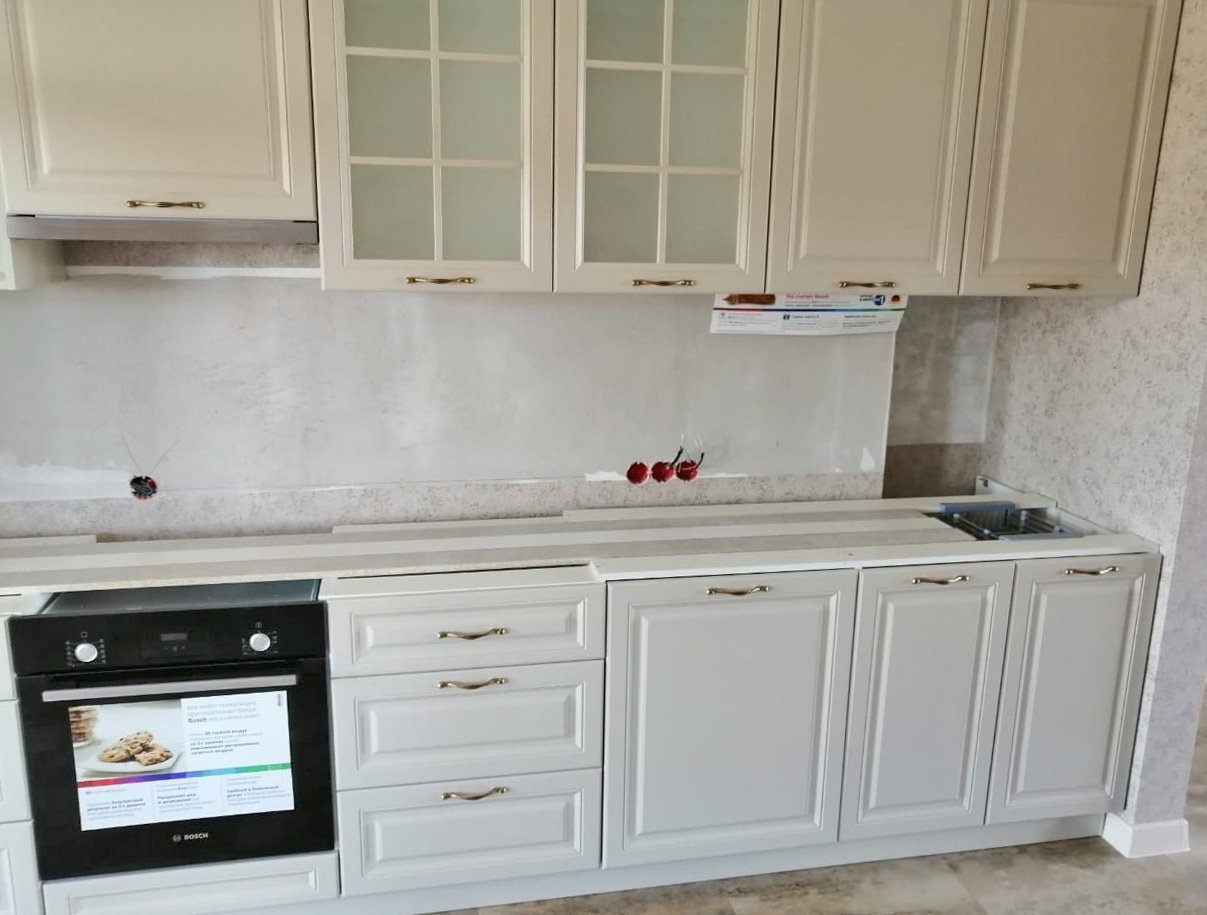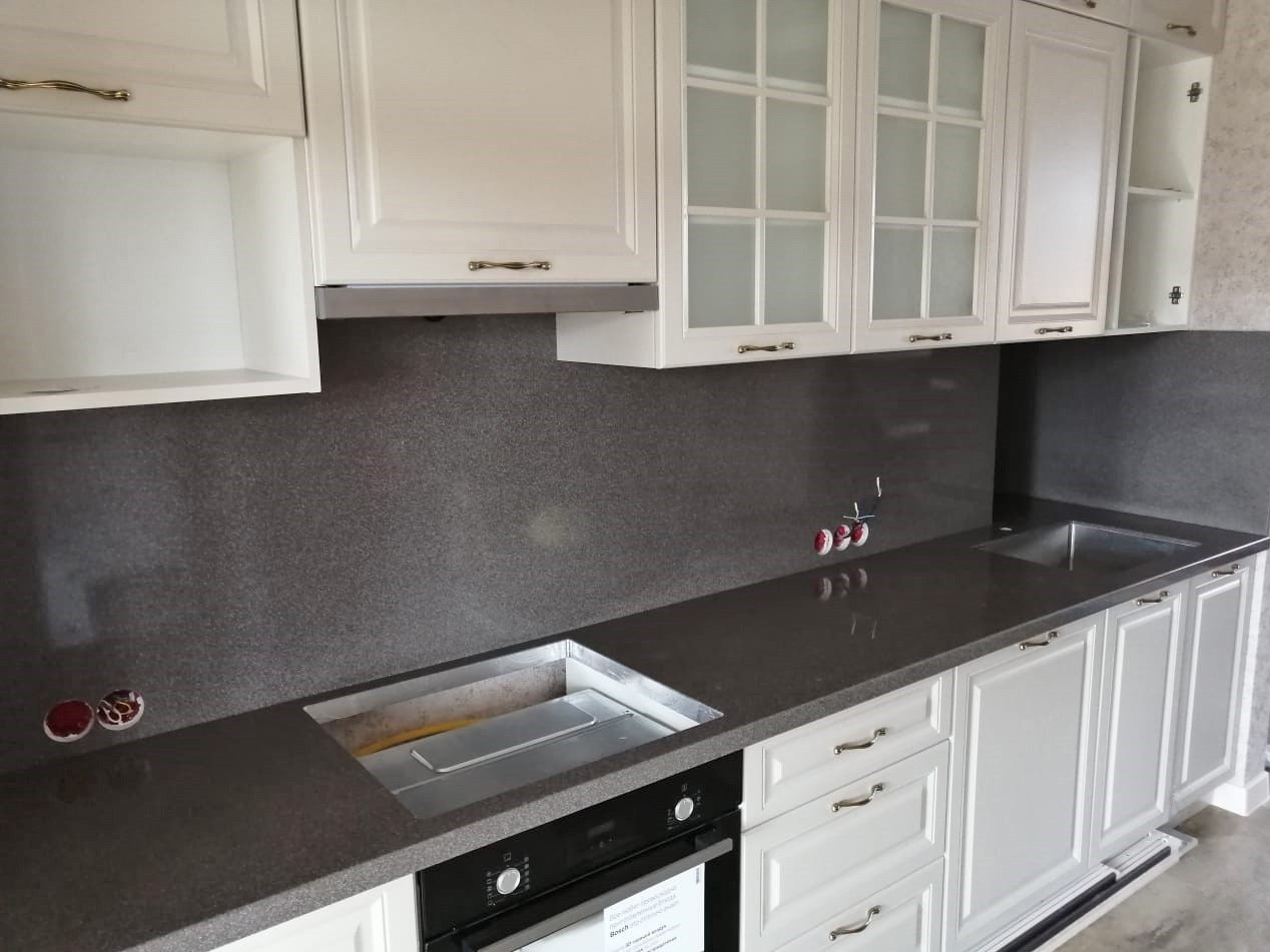 Дополнительно изготовили стеновые панели, которые будут выполнять роль фартука и объединять стену со столешницей в единое целое.