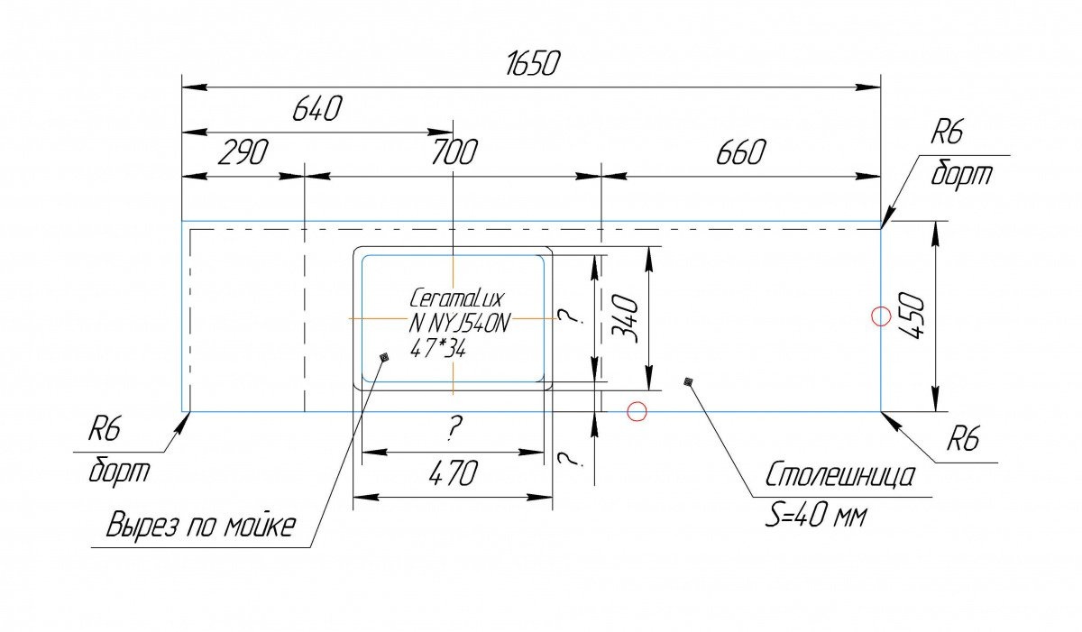 Заранее мы сделали вырез под мойку с усилением. Мойка интегрированная (вклеенная под акриловый камень), модель Ceramalux N NYJ540N. Сейчас стало популярным размещать мойки именно посредством интеграции, так как это отличный способ избавиться от грязи в стыках между изделиями.