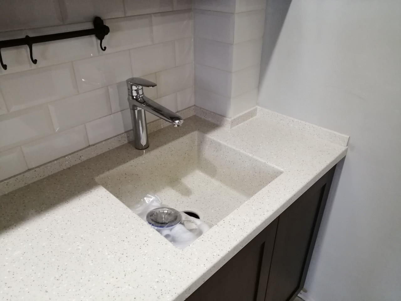 Столешница изготовлена из искусственного камня от производителя Grandex, модель A417.