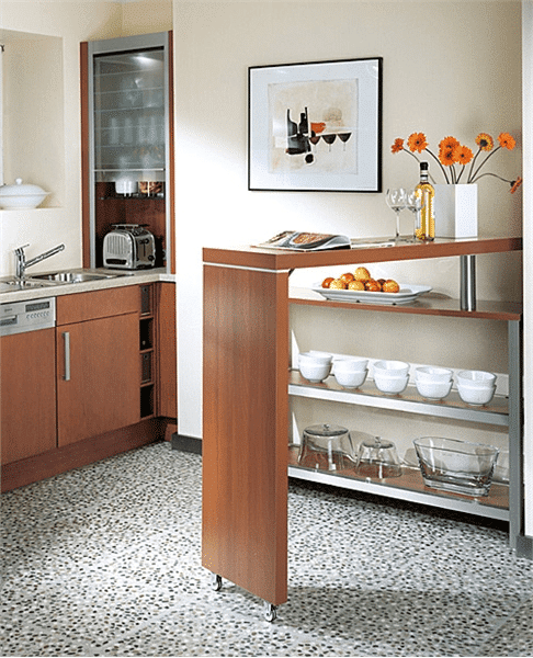 Преимущество барных-стоек трансформеров – возможность экономии места на кухне. Они могут быть сложены и убраны. Так получается создать дополнительное пространство для хранения утвари.
