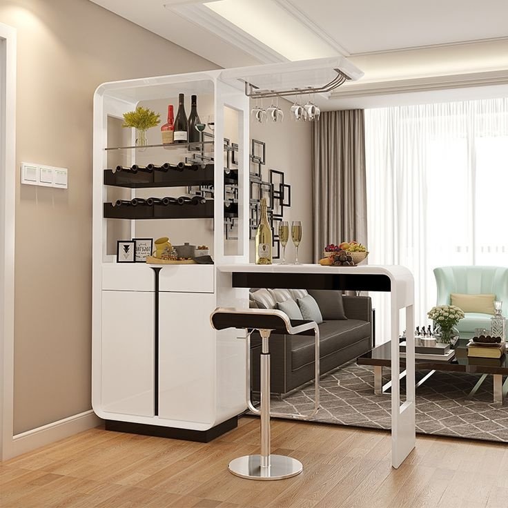 Внимание! Конструкция и функционал барной стойки зависят от ее расположения в комнате, а также предпочтений хозяев.