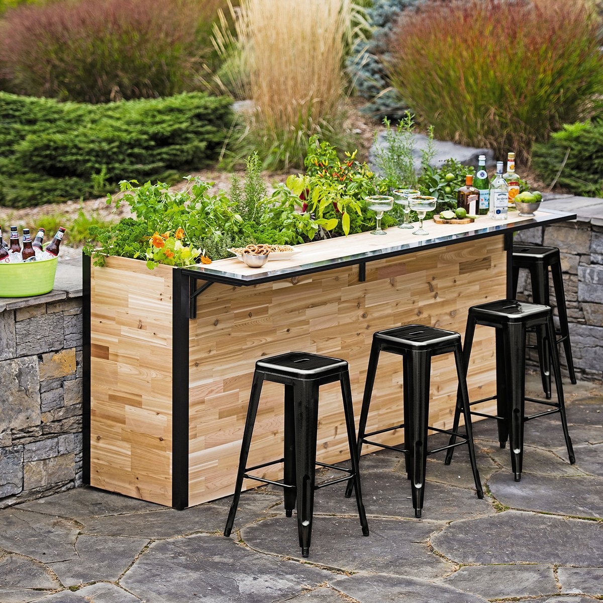 ΠΠΎ-ΠΏΠ΅ΡΠ²ΡΡ , ΠΎΠ½Π° ΠΏΡΠ΅Π΄ΠΎΡΡΠ°Π²Π»ΡΠ΅Ρ ΡΠ΄ΠΎΠ±Π½ΠΎΠ΅ ΠΌΠ΅ΡΡΠΎ Π΄Π»Ρ Ρ ΡΠ°Π½Π΅Π½ΠΈΡ ΠΈ ΠΎΡΠ³Π°Π½ΠΈΠ·Π°ΡΠΈΠΈ Π½Π°ΠΏΠΈΡΠΊΠΎΠ² ΠΈΠ»ΠΈ Π±Π°ΡΠ½ΡΡ Π°ΠΊΡΠ΅ΡΡΡΠ°ΡΠΎΠ². ΠΠΎΠ½ΡΡΡΡΠΊΡΠΈΡ ΠΎΡΠ½Π°ΡΠ΅Π½Π° ΠΏΠΎΠ»ΠΊΠ°ΠΌΠΈ, ΡΠΊΠ°ΡΡΠΈΠΊΠ°ΠΌΠΈ ΠΈ ΡΡΠΈΠΊΠ°ΠΌΠΈ, Π³Π΄Π΅ ΠΌΠΎΠΆΠ½ΠΎ ΡΠ°Π·ΠΌΠ΅ΡΡΠΈΡΡ ΡΡΠ΅ΠΊΠ»ΡΠ½Π½ΡΠ΅ Π±ΠΎΠΊΠ°Π»Ρ, Π±ΡΡΡΠ»ΠΊΠΈ Π°Π»ΠΊΠΎΠ³ΠΎΠ»Ρ, Π»Π΅Π΄, ΡΠΎΠΊΠΈ ΠΈ Π΄ΡΡΠ³ΠΈΠ΅ ΠΈΠ½Π³ΡΠ΅Π΄ΠΈΠ΅Π½ΡΡ Π΄Π»Ρ ΠΏΡΠΈΠ³ΠΎΡΠΎΠ²Π»Π΅Π½ΠΈΡ ΠΊΠΎΠΊΡΠ΅ΠΉΠ»Π΅ΠΉ. Π’Π°ΠΊΠΈΠΌ ΠΎΠ±ΡΠ°Π·ΠΎΠΌ, Π²ΡΠ΅ Π½ΡΠΆΠ½ΡΠ΅ ΠΌΠ°ΡΠ΅ΡΠΈΠ°Π»Ρ Π΄Π»Ρ Π²Π΅ΡΠ΅ΡΠΈΠ½ΠΊΠΈ ΠΈΠ»ΠΈ ΠΏΡΠΈΡΡΠ½ΠΎΠ³ΠΎ Π²ΡΠ΅ΠΌΡΠΏΡΠ΅ΠΏΡΠΎΠ²ΠΎΠΆΠ΄Π΅Π½ΠΈΡ Ρ Π΄ΡΡΠ·ΡΡΠΌΠΈ Π±ΡΠ΄ΡΡ Π²ΡΠ΅Π³Π΄Π° ΠΏΠΎΠ΄ ΡΡΠΊΠΎΠΉ.