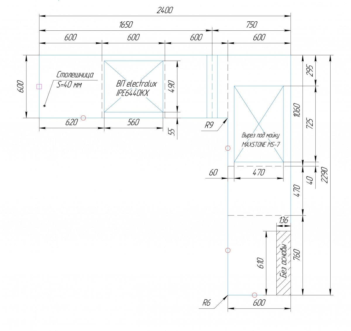 Заранее на изделии сделан вырез под варочную панель с усилением и термозащитой, а также вырез под мойку.