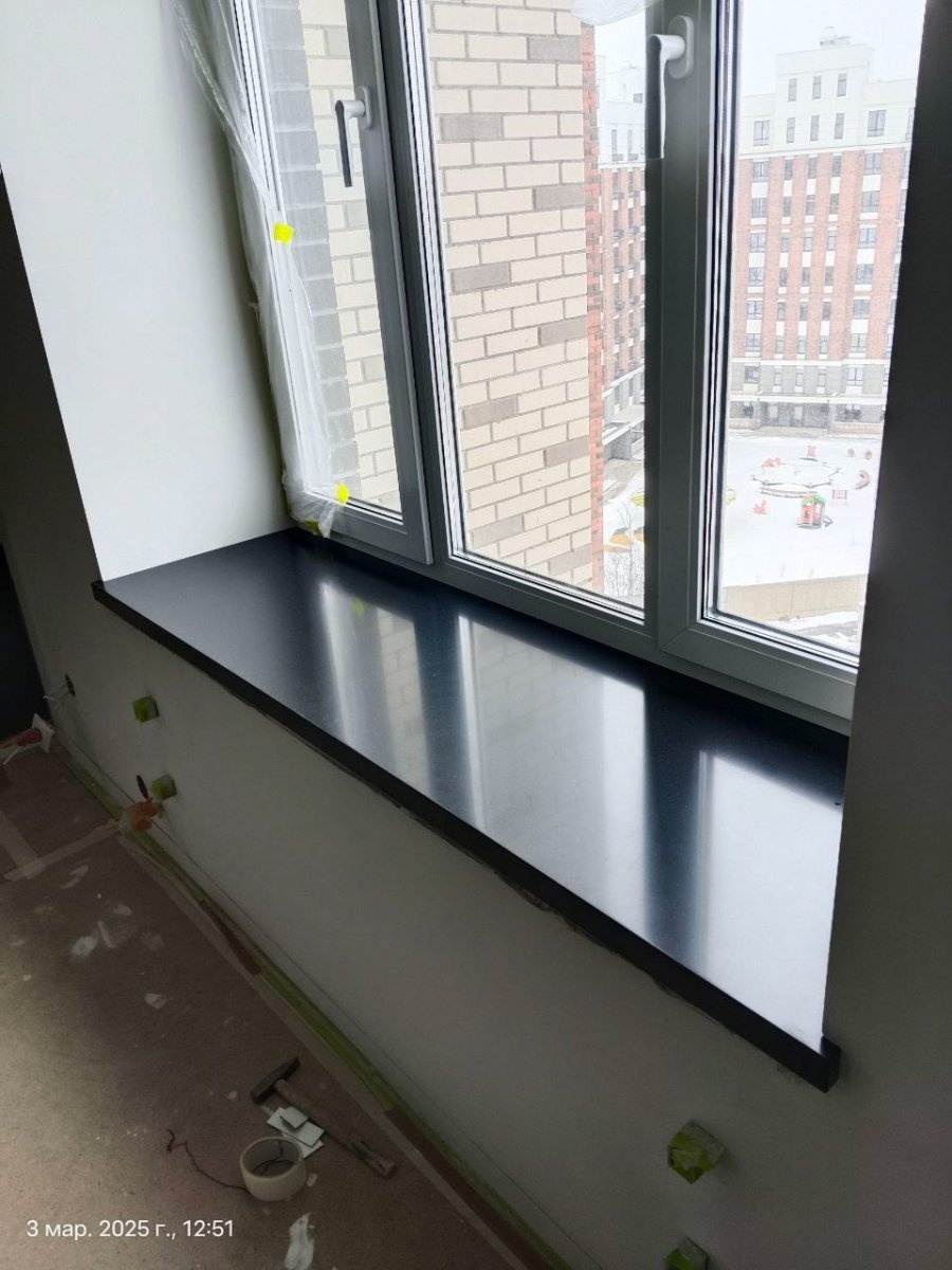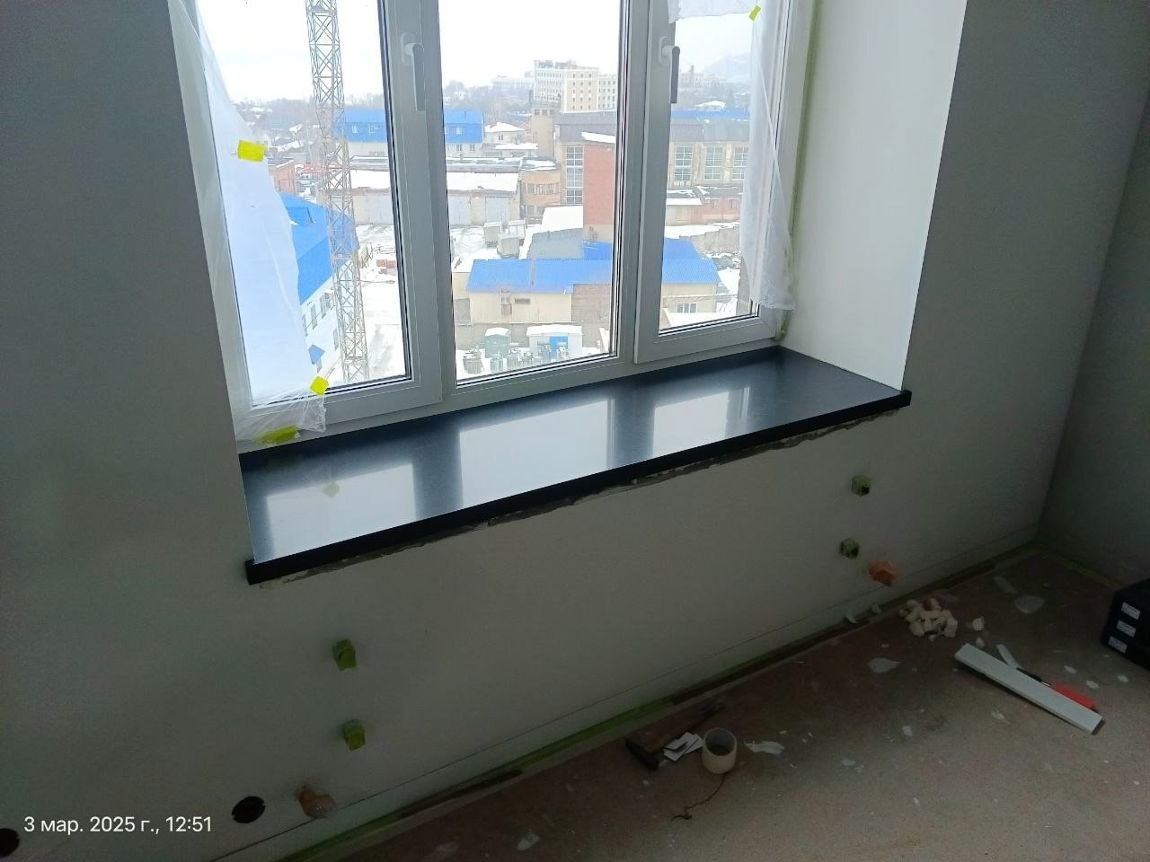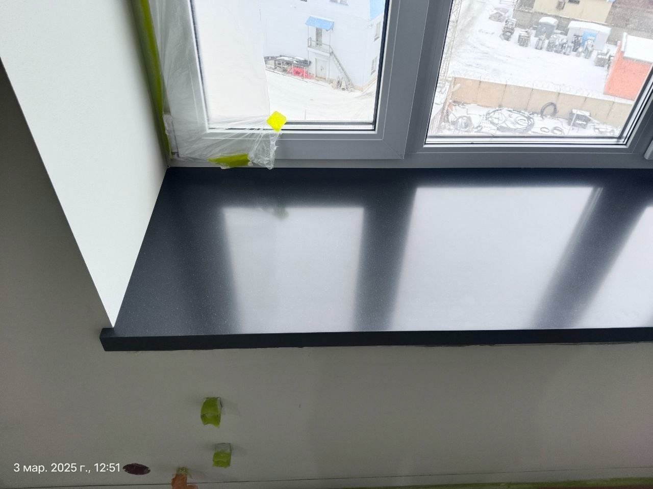 Компания "Garant Мебель" занимается изготовлением не только мебели и столешниц для кухонь, также мы принимаем заказы на изготовление и установку подоконников. В частности, данный заказ был именно таким - наши специалисты сделали и установили черные матовые подоконники из камня Hi-Macs G010. Это современный искусственный (акриловый) камень, который обладает рядом преимуществ.