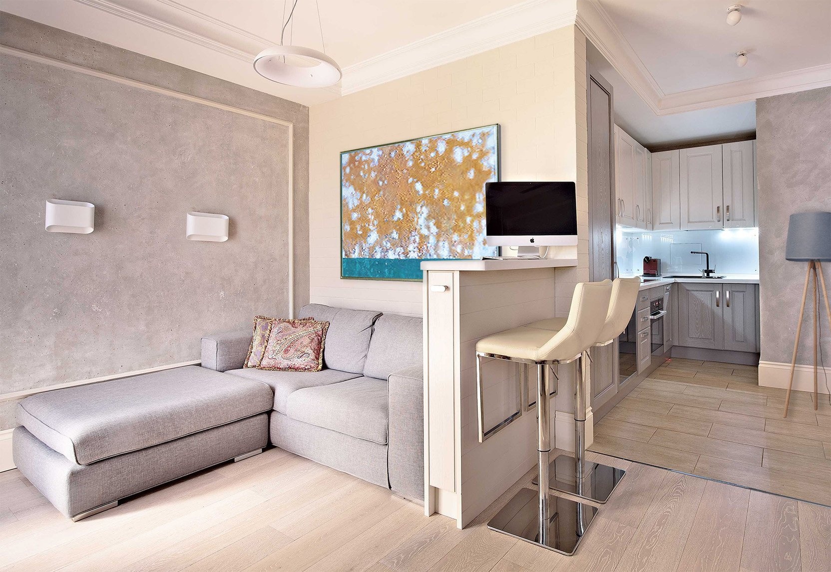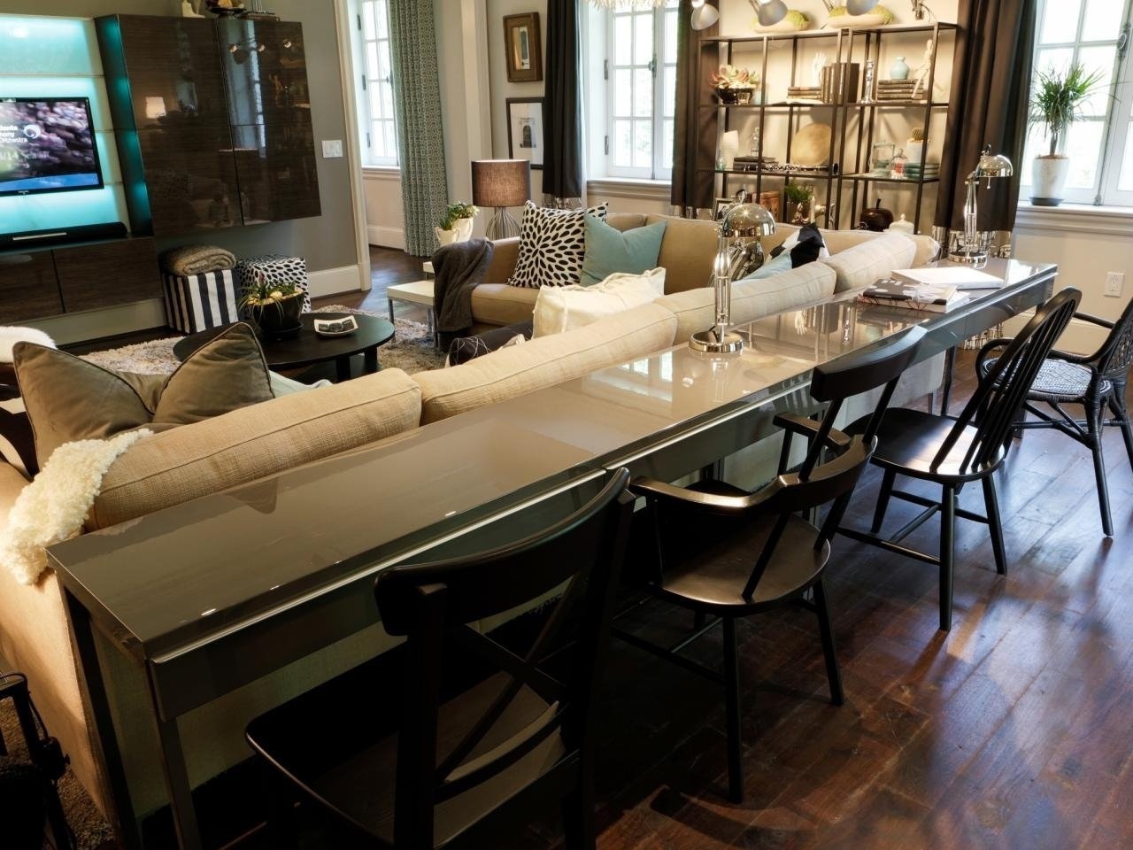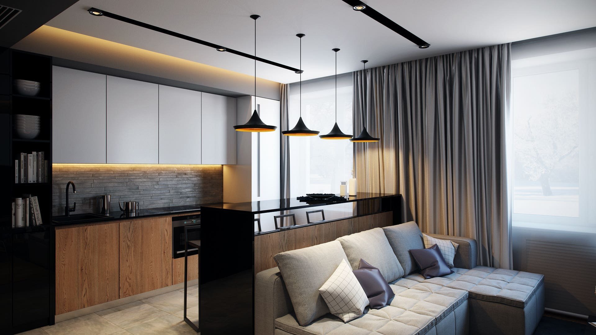 Барная стойка рядом с диваном, варианты использования: