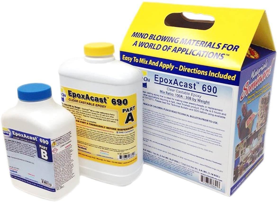 Еще одной отечественной эпоксидной смолой, обладающей высокой прозрачностью и жесткостью в твердом состоянии, является EpoxAcast 690. Она не пластична и позволяет заливать до 5 см первого слоя. Однако данный материал подвержен усадке по мере застывания, поэтому его лучше использовать для изготовления бижутерии. При изготовлении больших монолитных конструкций необходим опыт.