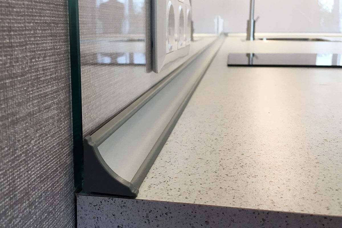 Надеемся, что вы поняли, как выполняется монтаж кухонного плинтуса на столешницу.