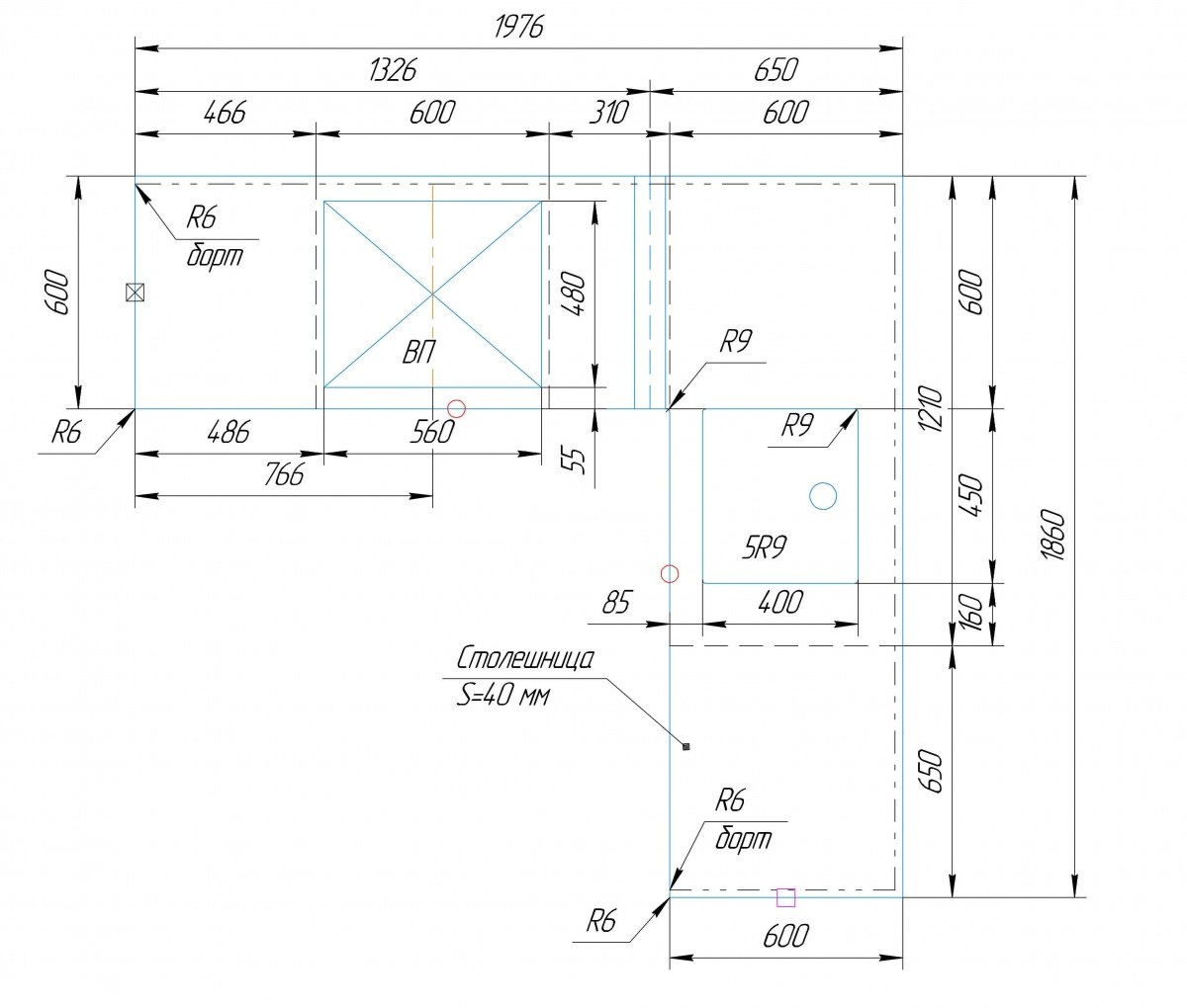 Заранее на столешнице сделаны вырезы под варочную панель с усилением и термозащитой.