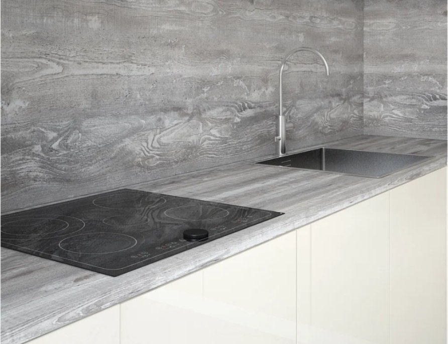 Ламинированная столешница на кухне обеспечит практичность, долговечность и отличный функционал. Для потребителя производители предлагают огромный выбор ассортимента HPL-ламината в любом дизайне – как однотонный, так и с имитацией природных материалов или с актуальными узорами, абстракцией – под различную стилистику. Простой монтаж и доступная стоимость делают этот материал популярным и востребованным.