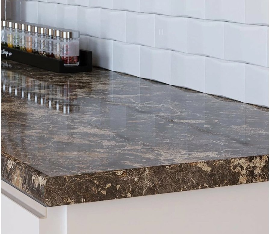 Для оформления кухонной столешницы следует выбирать компакт-ламинат. Это декоративно-слоистый пластик БСП (высокого давления и горячего прессования) или HPL – high pressure laminate. Он состоит из оригинального пакета по-особому спрессованных крафт-бумаг, которые пропитаны различными смолами, что в разы повышает долговечность и прочность материала.