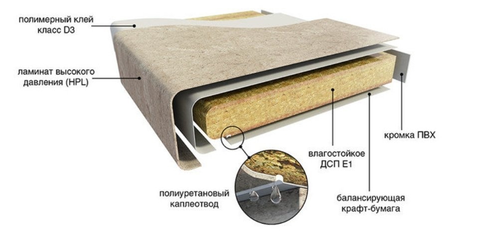 Важно! HPL-ламинат требует дополнительного жесткого основания, например, из ДСП, МДФ или толстой и влагостойкой фанеры.