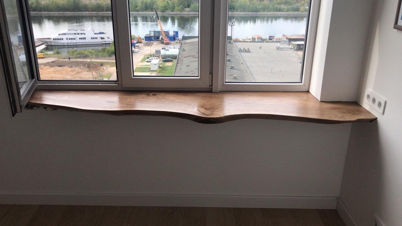 Именно из этих материалов производится самая прочная мебель. При должном уходе дубовый или ясеневый подоконник прослужит многие годы и практически не поменяет свой первоначальный вид. В процессе монтажа дерево сращивают, как при кладке паркетной доски, или клеят скрепленными ламелями. Это позволяет добиться стабильной геометрии.
