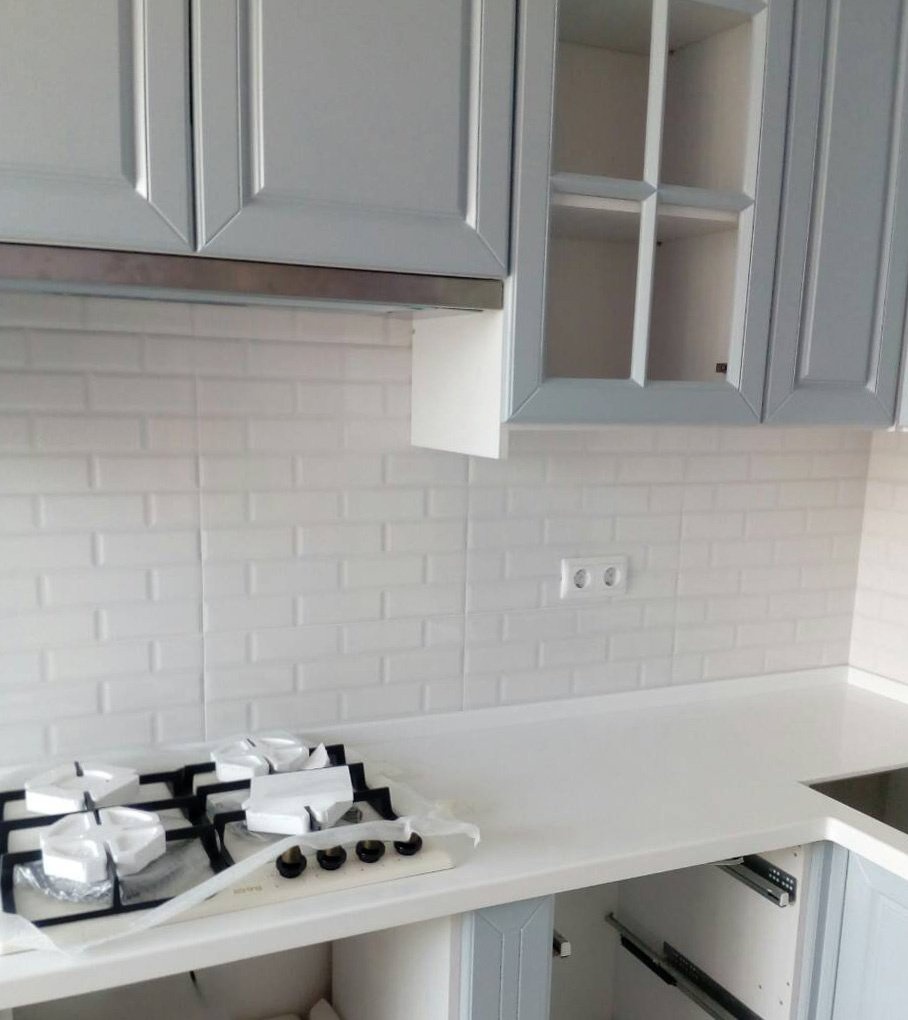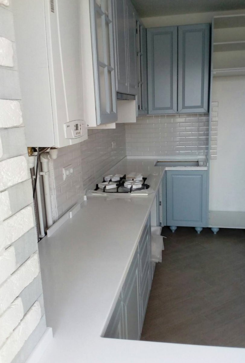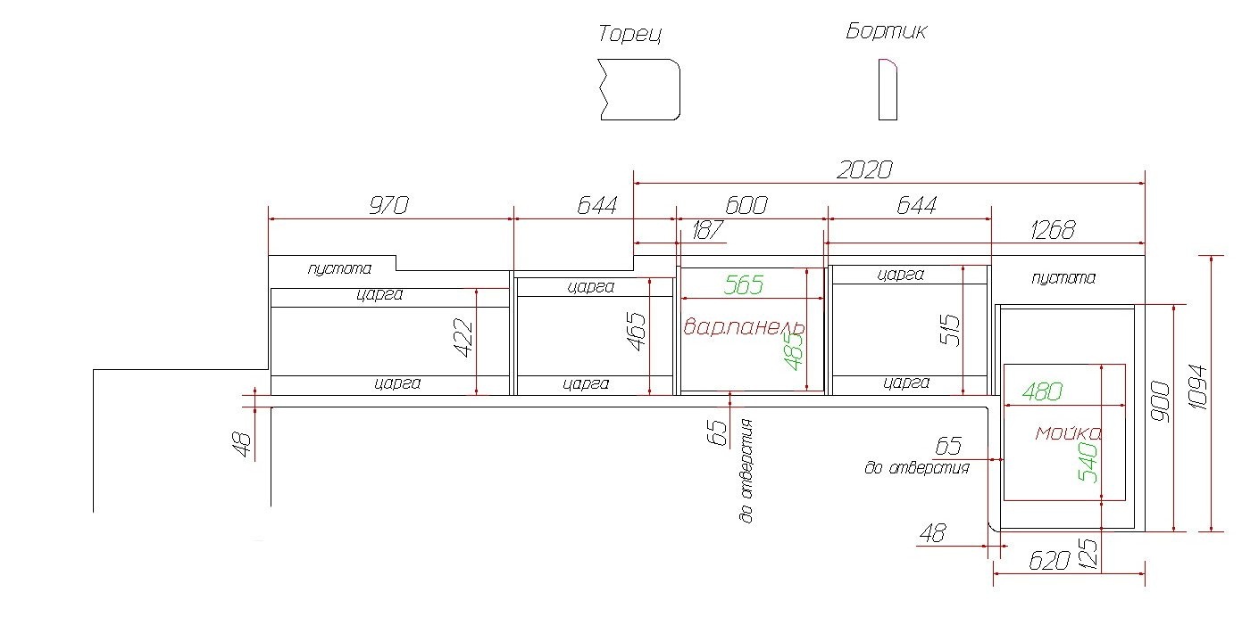 Будущая столешница должна быть П-образной, с небольшим продолжением с левой стороны.