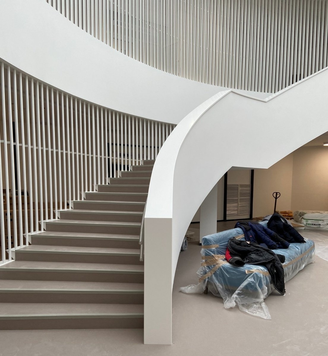 Мы сделали перила и накладки для лестницы в школе города Черноголовка. Для этого использовали акриловый камень Hi-Macs цвета S028.Этот материал легко поддается обработке, что позволяет создавать плавные линии и эстетически привлекательные формы. Перила выполнены с учетом всех стандартов безопасности.