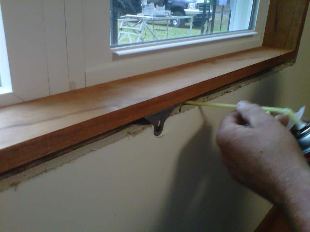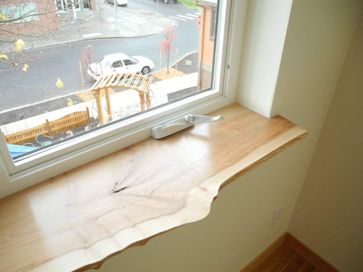В панельных домах деревянный подоконник может быть установлен на цементно-песчаную смесь, которая должна покрывать верхнюю границу выравнивающих клиньев на 5 мм. Доски прикрепляют и убирают излишки раствора. Возможно также установить деревянный подоконник своими руками, в этом случае используйте монтажную пену вместо цементного раствора. Для надежной фиксации изделия в его торцевую часть вкручиваются саморезы сквозь раму окна, а силиконовый герметик делает места вкручивания саморезов герметичными.