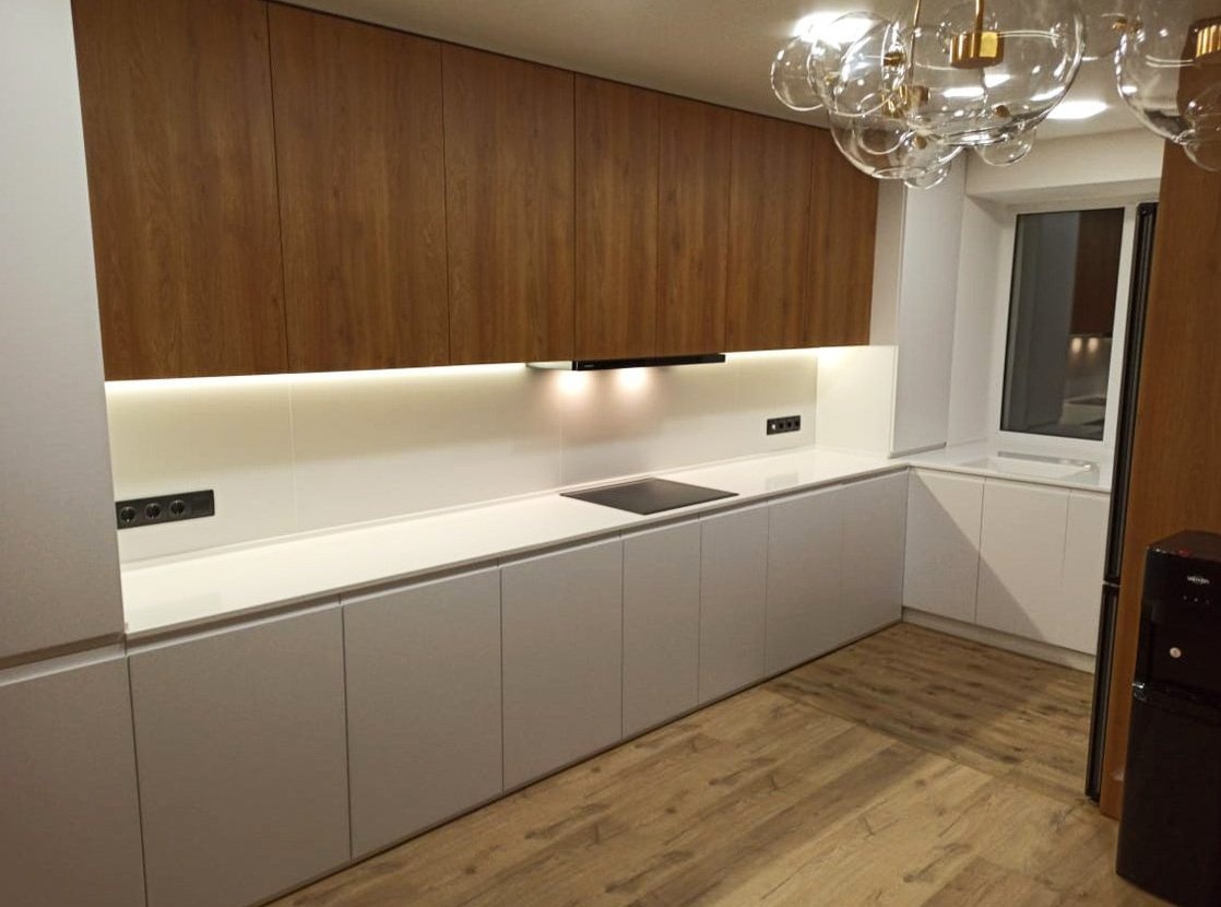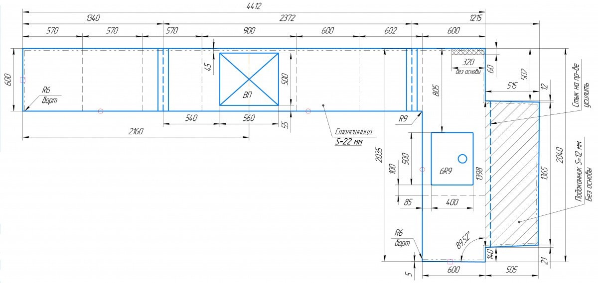 Стык между столешницей и подоконником, мы усилили, чтобы избежать возможных трещин и других дефектов.