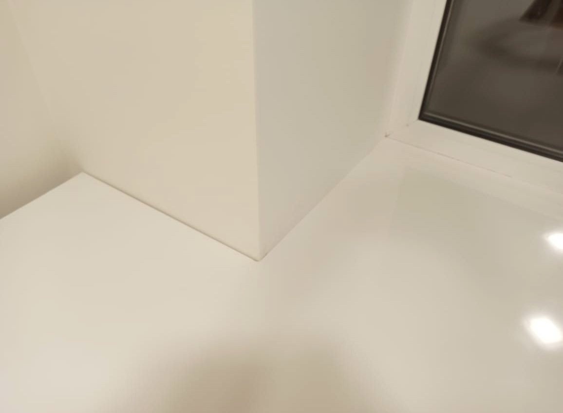 Искусственный камень для будущего подоконника мы использовали Hi-Macs SO28. Цвет: белый.