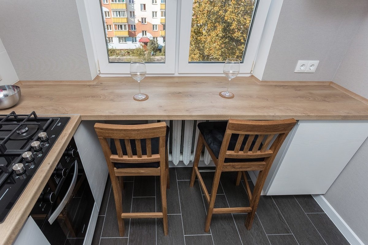 Еще одно преимущество – эстетическое. Подоконник-столешница имеет современный вид, который вписывается в разные дизайнерские решения. Он создает единое гармоничное пространство и придает кухне законченный вид.