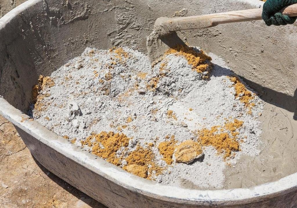 Сначала смешайте сухие ингредиенты (цемент и песок) в контейнере. Затем постепенно добавьте воду, перемешивая все с помощью шпателя или миксера. Процесс смешивания требует некоторой физической силы и тщательности, чтобы добиться однородности и отсутствия комков.
