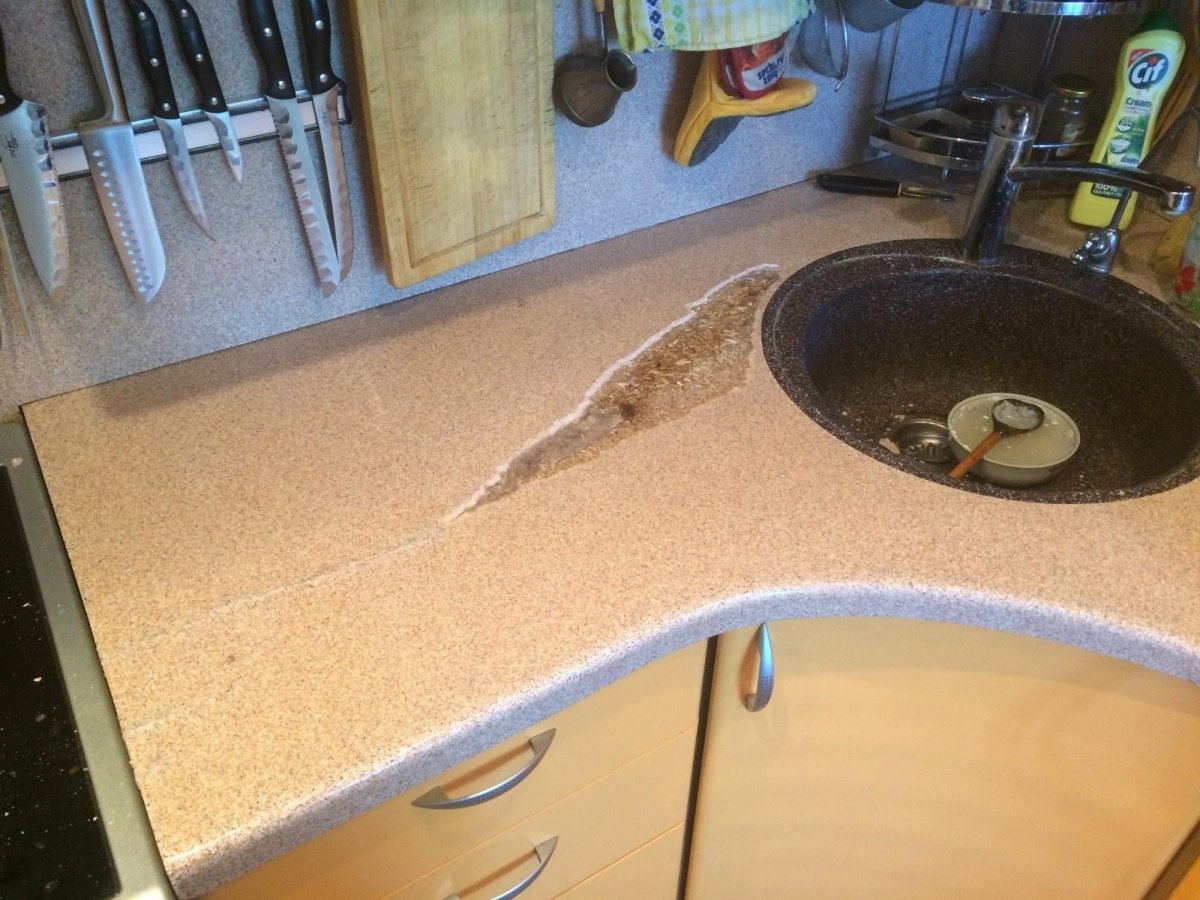 На столешнице бывают разные дефекты. Подробнее расскажем о них далее.