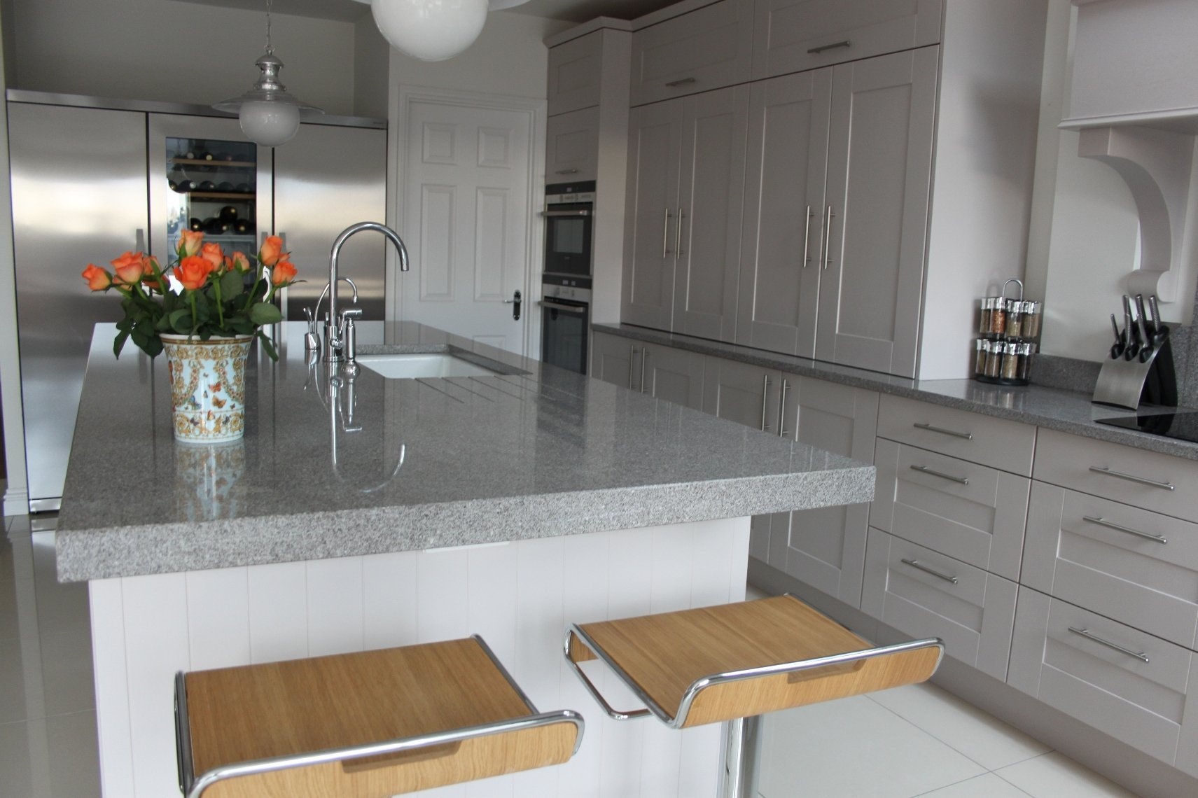 Еще одно преимущество столешниц – их способность создавать ощущение большого пространства. Главный момент здесь – серый цвет не подчеркивает границы, а позволяет глазу свободно скользить по поверхности, тем самым увеличивая площадь помещения. Если у вас есть ограниченное пространство, графитовая столешница – хорошее решение.