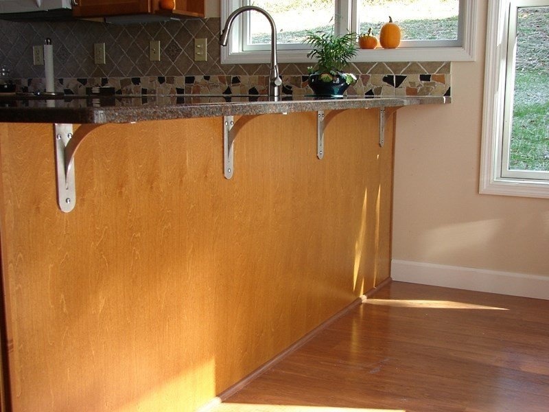 Установка на кронштейны представляет один из распространенных и надежных методов монтажа. Особенностью этого способа крепления считается, что кронштейны устанавливаются под мебелью, а не сверху, что делает крепление невидимым снаружи. Это создает впечатление плавности, элегантности в дизайне кухни или другого помещения, где установлена мебель.