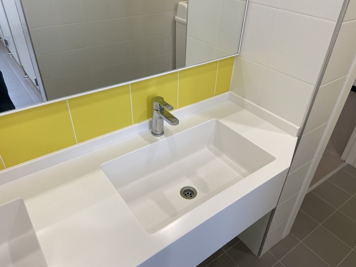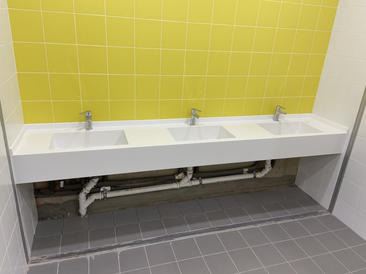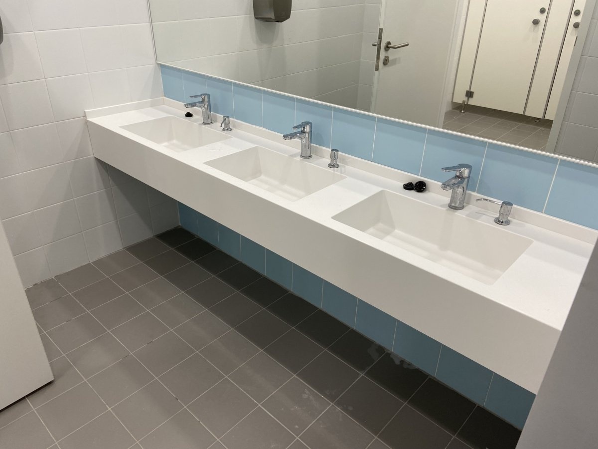 Мы завершили проект по установке современных раковин из акрилового камня в школе города Черноголовка. Все изделия изготовлены с учетом строгих требований к безопасности, гигиене и долговечности, что делает их идеальным решением для образовательных учреждений.