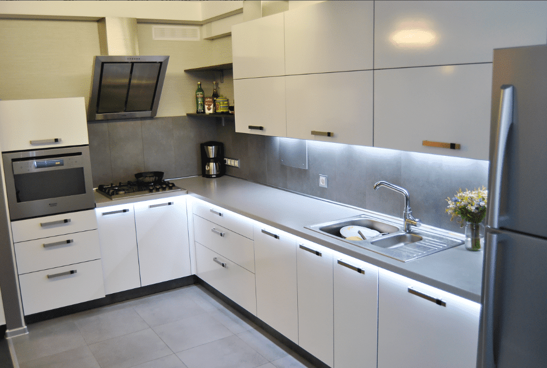 Из статьи мы выяснили, какая столешница лучше для белой кухни. Ориентируйтесь на остальные предметы мебели. Речь идет о фартуке, подоконнике и т.д.