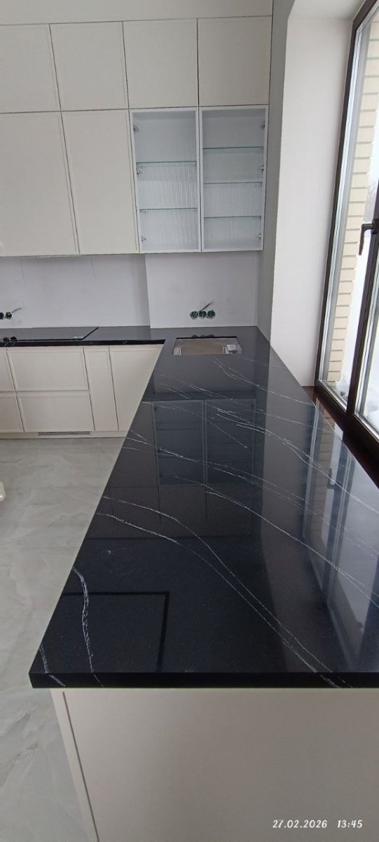 Столешница для кухонного гарнитура, камень C 802 Piacenza Interstone, установлена в частном доме.