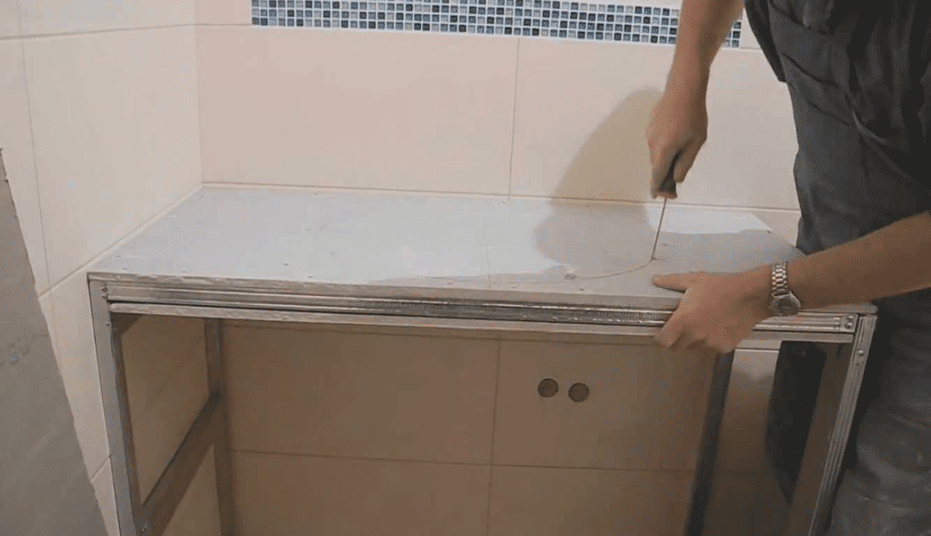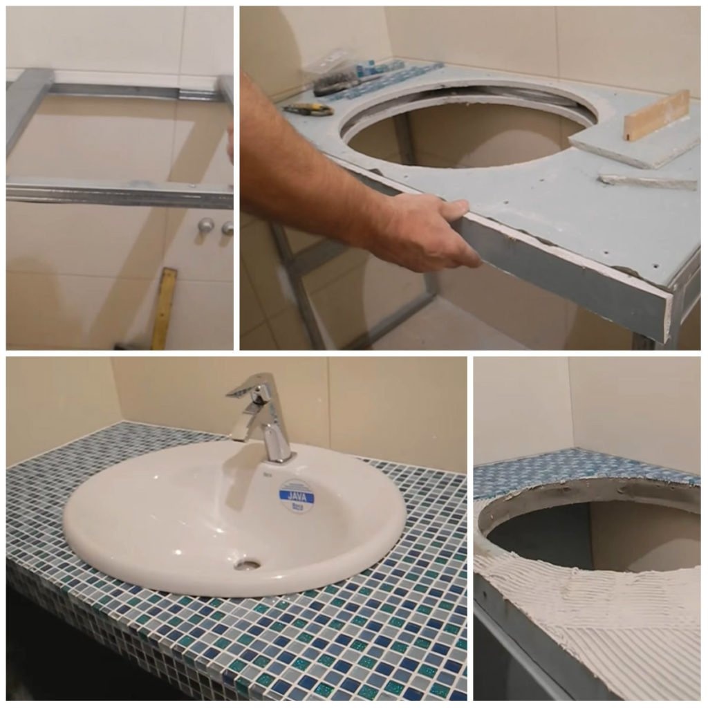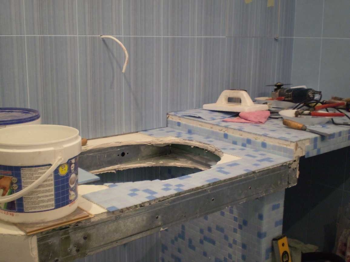 Столешницу для ванной можно сделать самостоятельно. Процесс состоит из следующих этапов: