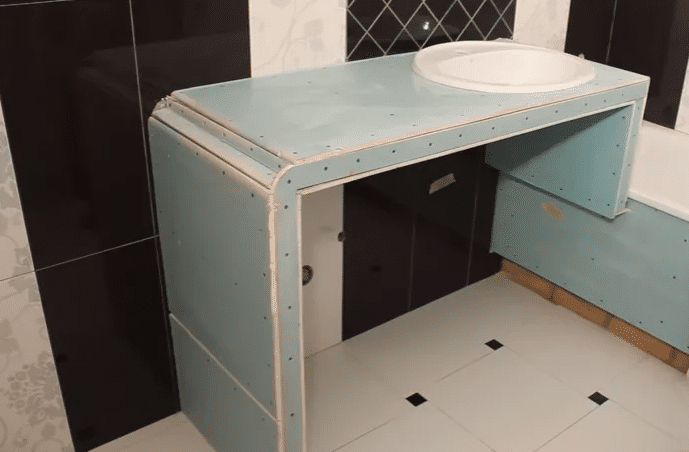 Если брать гипсокартон, то это вариант для самостоятельного изготовления. Для отделки используется мозаика или плитка.