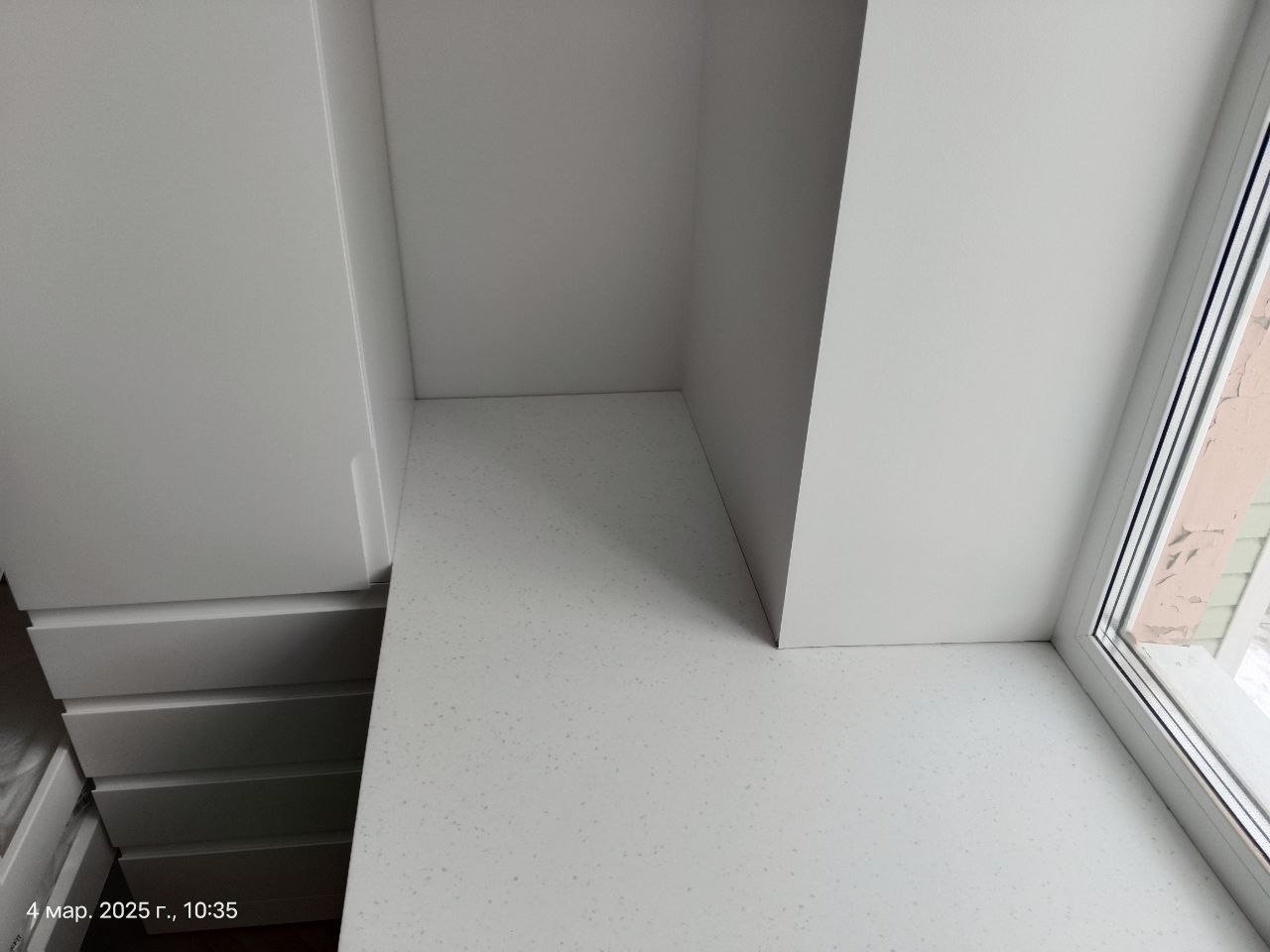 В ходе работы нами были произведены качественные подоконники из прочных материалов, а светлый оттенок с матовой текстурой Cotton Wool A-410 идеально вписывается в любой дизайн.