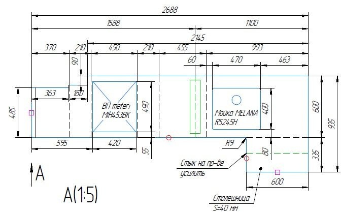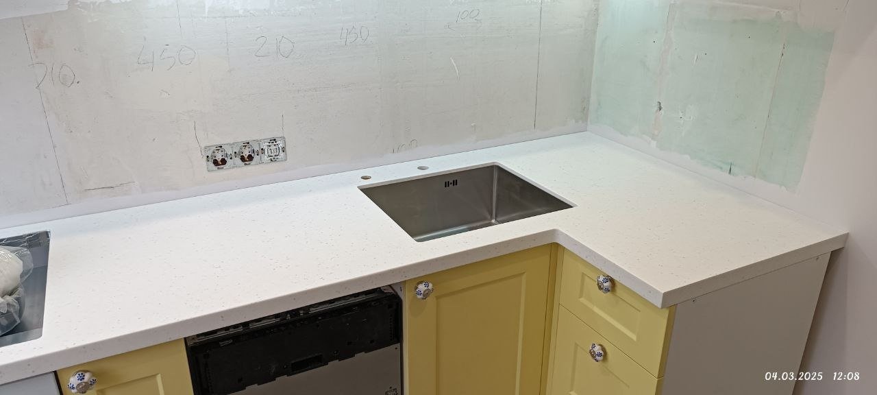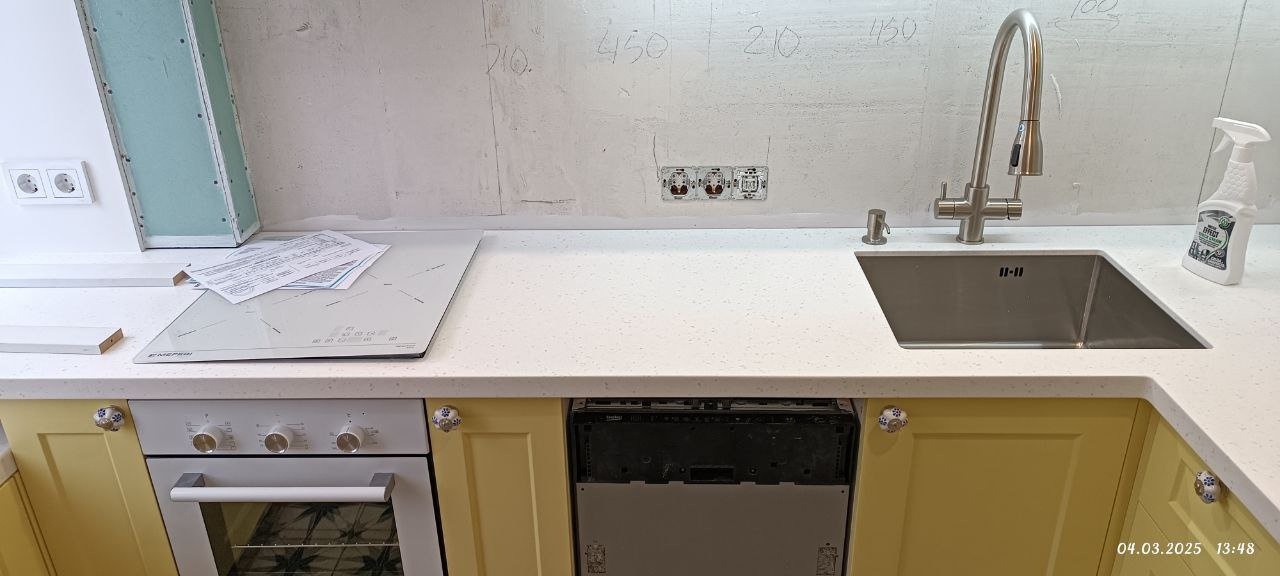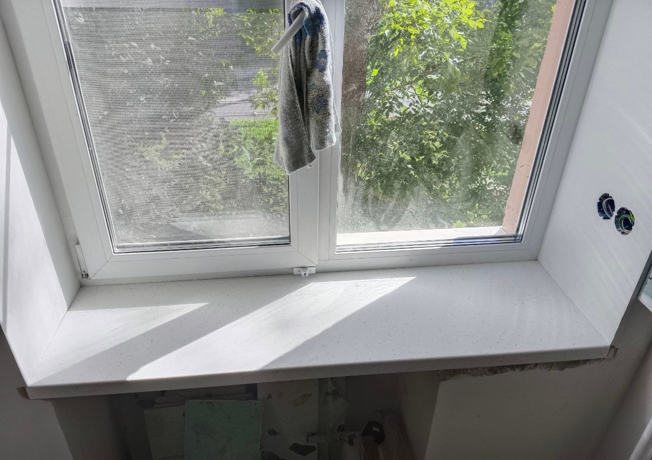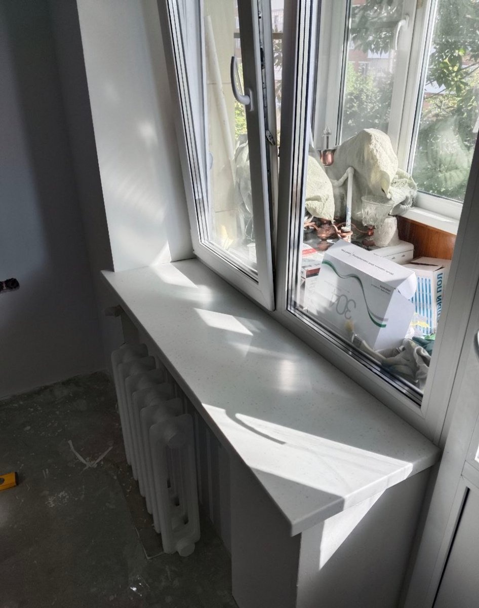 Изделия из искусственного камня можно размещать абсолютно в любой комнате. Мы сняли мерки и изготовили кухонную столешницу размером 2688*935, подоконники и столешницу совмещенную с подоконником.