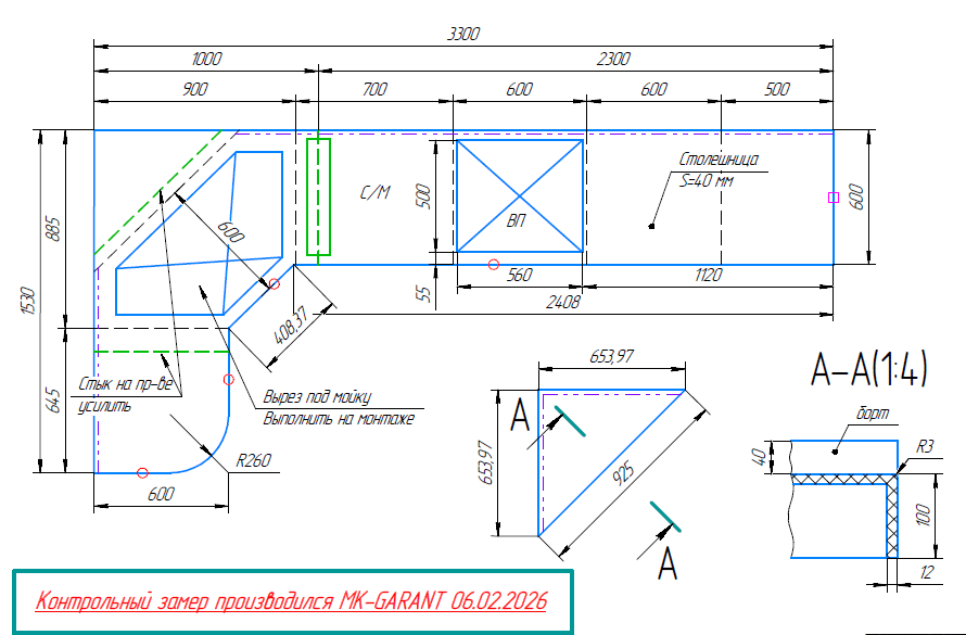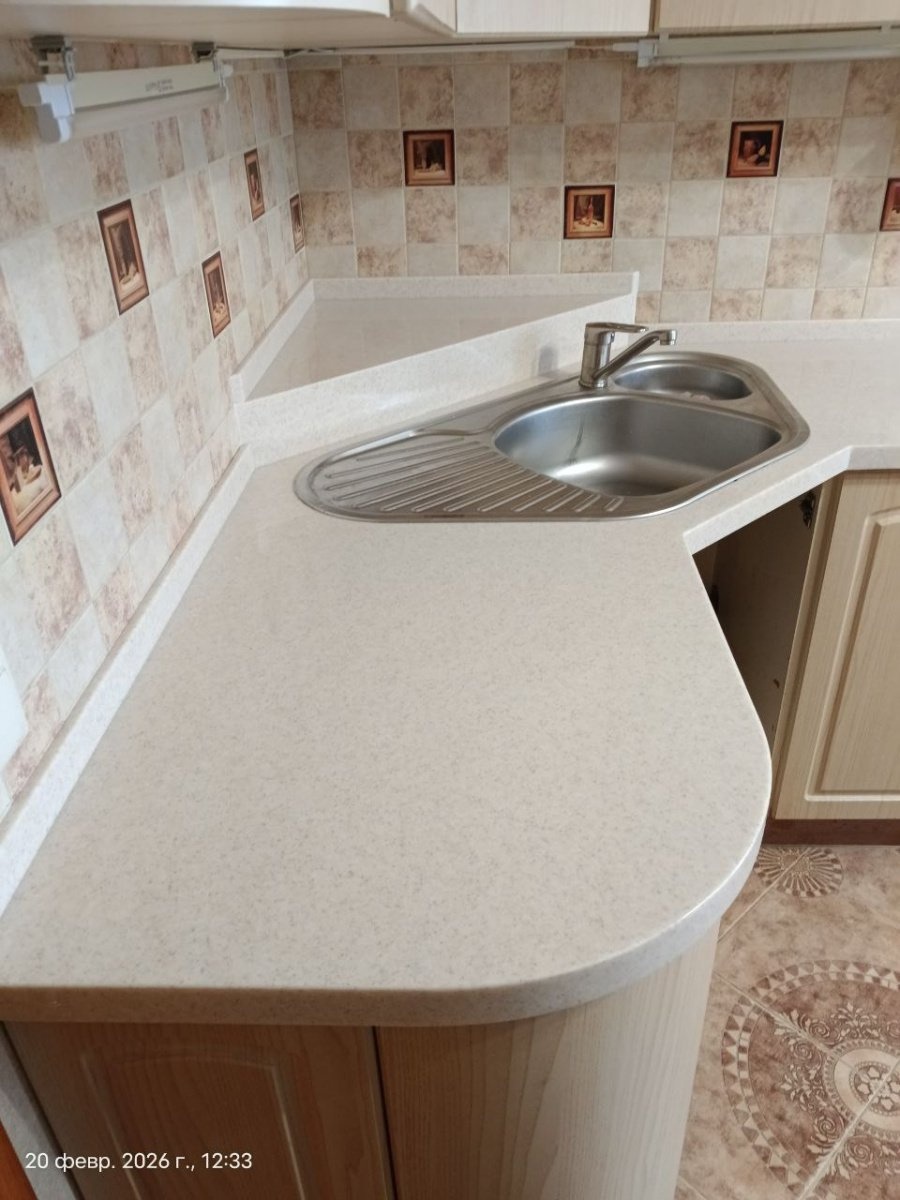 Выполнен демонтаж старой столешницы и монтаж новой, перечень работ: