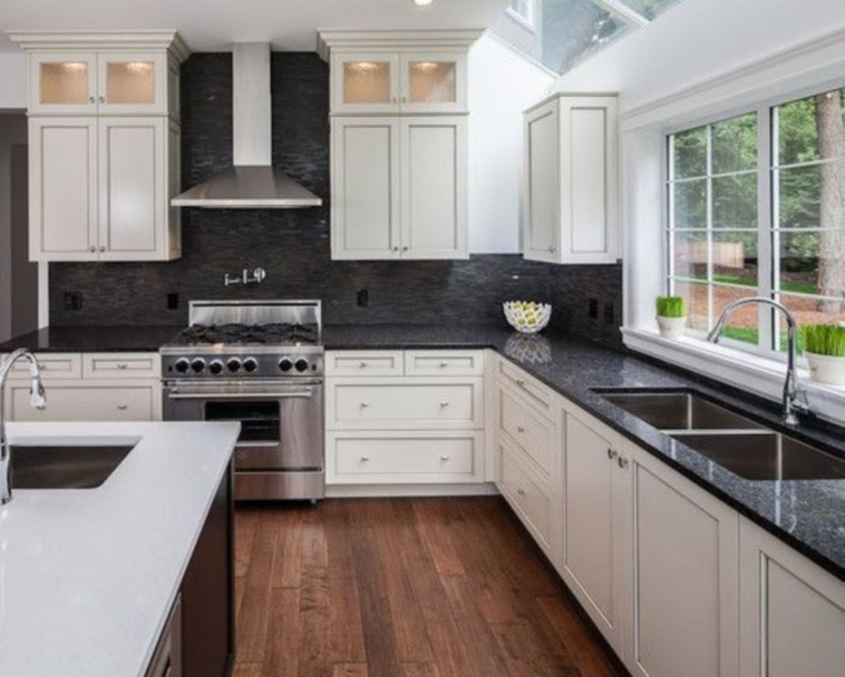 Светлая кухня с темной столешницей – решение для тех, кто хочет добавить в свой интерьер элегантности. Светлые оттенки на стенах и мебели делают помещение просторным, а темная поверхность создает яркий акцент и придает ему особую изюминку.