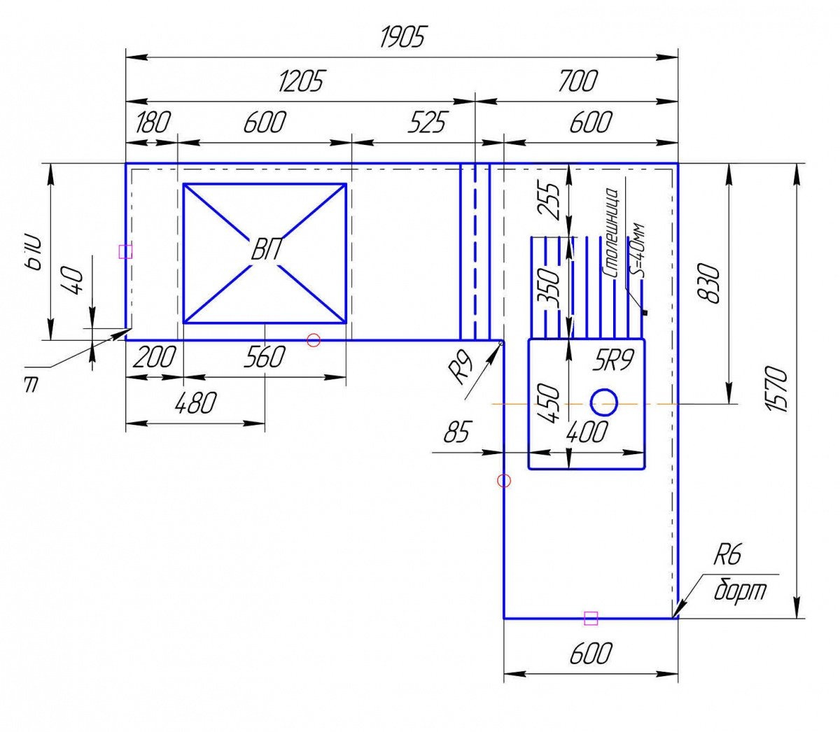 Стандартный заказ столешницы для готового кухонного гарнитура.