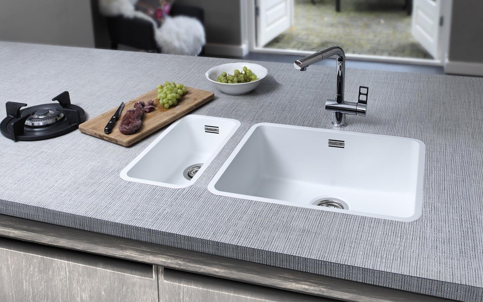 Конструкции данного типа имеют большие размеры и емкость по сравнению с традиционными мойками, что делает их подходящим выбором для семей или тех, кто часто готовит. Также врезной умывальник эффективнее использует пространство на гарнитуре и делает рабочую поверхность функциональнее.