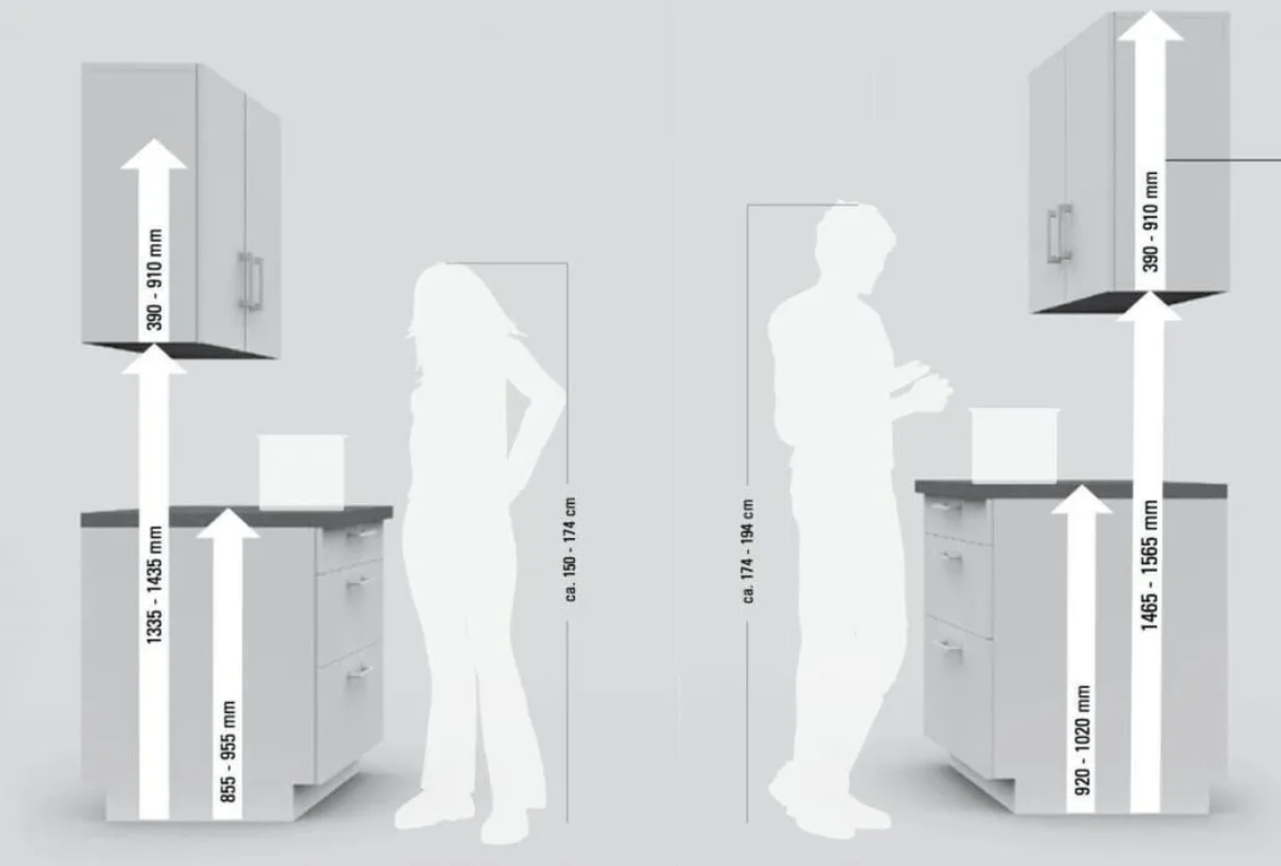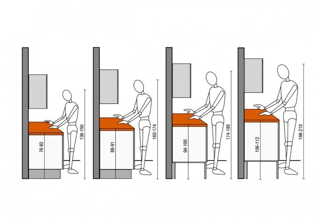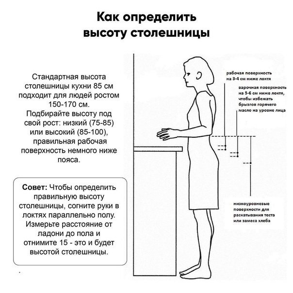 Исходя из вашего роста, выберите соответствующую высоту кухни: